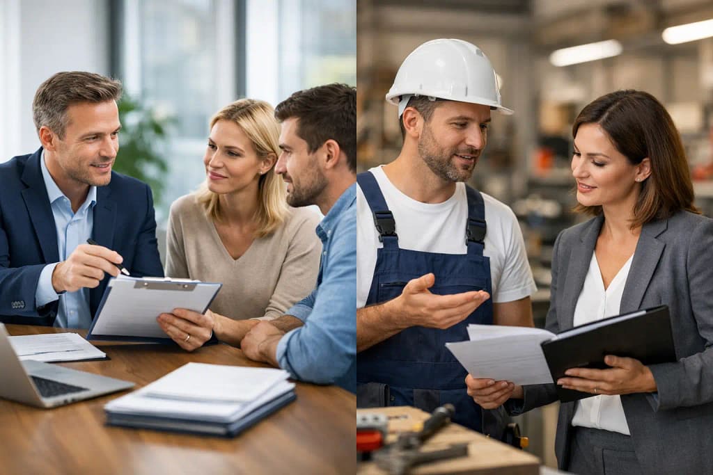 In der Praxis ist die Antwort oft nicht entweder oder, sondern beides. Viele Unternehmen arbeiten heute hybrid. Ein Betrieb verkauft nicht nur Produkte, sondern berät auch. Ein IT-Dienstleister installiert Hardware vor Ort und übernimmt gleichzeitig Konzeption, Betreuung und Administrationsleistungen. Eine Hausverwaltung hat organisatorische, kaufmännische und operative Risiken zugleich.