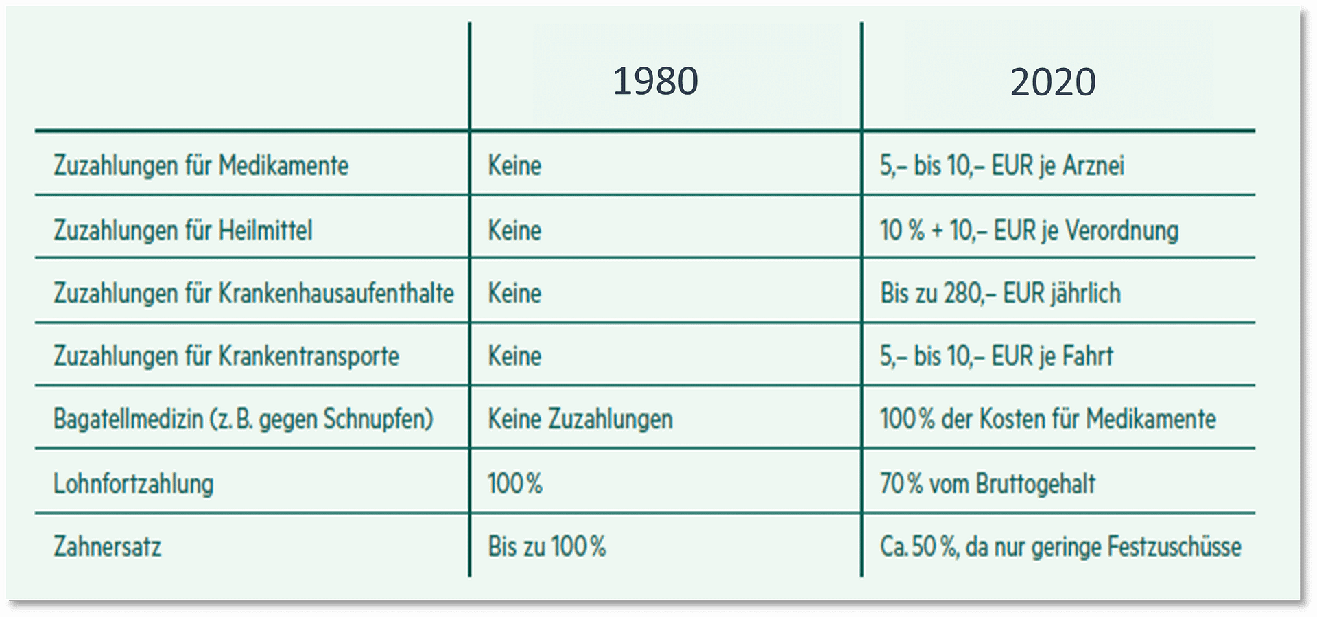 Um die Kostensteigerung auch in der gesetzlichen Krankenversicherung zu finanzieren werden hier neben Beitragssteigerungen, vor allem auch Leistungen gekürzt und Zuzahlungen für Leistungen vereinbart. Zusätzlich wurden in der gesetzlichen Krankenversicherung Leistungen erheblich gekürzt und Zuzahlungen eingeführt. Darunter leiden zu vorderst ältere oder Kranke Versicherte.